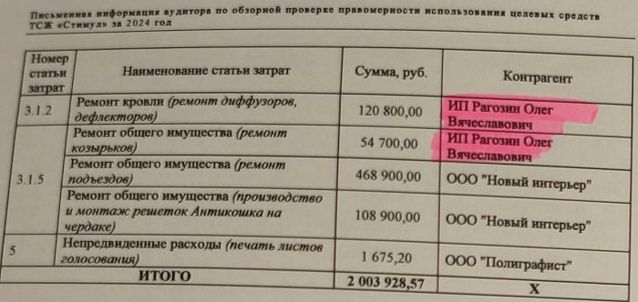В моем распоряжении сейчас появилась документация с домов, где трудится Елена Юрьевна, и она же отчитывается. Но не перед жителями с помощью живых и бесплатных ревизионных комиссий, а с помощью наемных аудиторов, которые за нужную таксу нарисуют все, что душе и заказчику угодно.