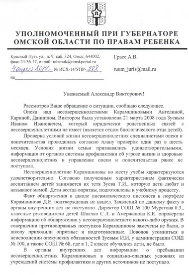 Большой резонанс произвела публикация «Семья из Омска пытается спасти 4-х беззащитных детей от… «государства»!!!» http://omsk-pravo.ru/index.php?option=com_content&view=article&id=1398:-4-lr&catid=185:astashkin