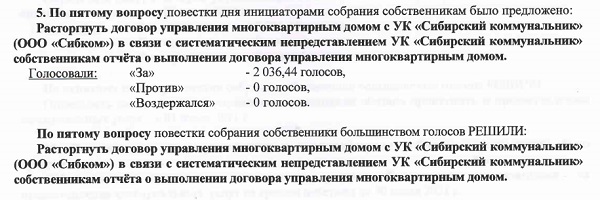 И уже не важно, что ранее эта «инициатор» добровольно подписалась в документе о смене УК «Сибком» на другую компанию и, следовательно, по Закону не имела права пересматривать свое же собственное решение. Но, видимо, когда речь идет о корпоративном интересе на такие «мелочи», как Жилищный кодекс РФ, можно просто закрыть глаза.