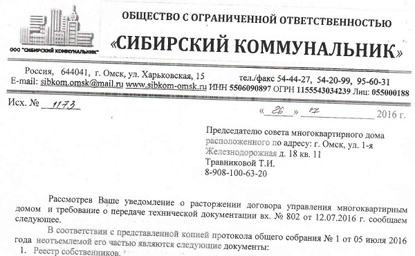 - «Сибирский коммунальник» в отношениях с собственниками, которые его, по сути, финансово содержат, дошел до такого уровня маразма, что отказывается принимать или подчиняться… решению Общих собраний собственников (ОСС) МКД! Не удивительно, что жители не хотят больше работать с такой организацией. Мы устали биться в закрытые двери, жаловаться, судиться, требовать…