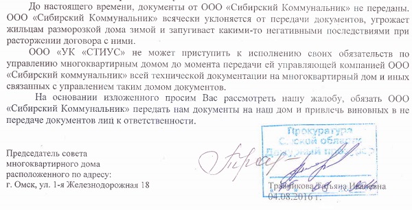 Как утверждает старшая по дому №18 по ул. 1-я Железнодорожная Татьяна Травникова, на протяжении многих лет жители, как могли, «стимулировали» ООО «Сибком» на улучшение работы. А потом терпение лопнуло: