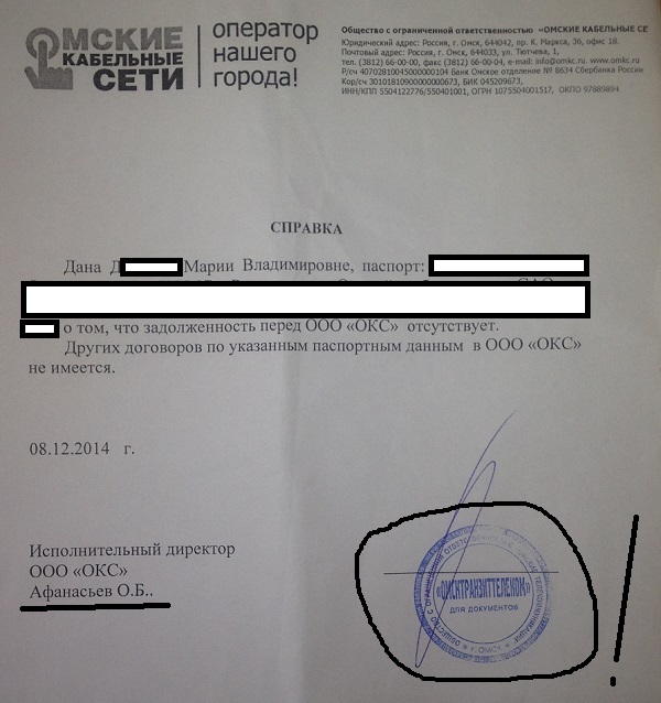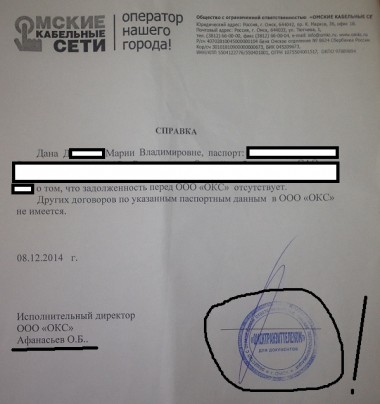 Видимо, поэтому в письме за подписью исполнительного директора ООО «ОКС» Олега Афанасьева появилась «левая» печать. Скорее всего, в конторе знают, что нарушают и каковы последствия. Но эта, как бы, «оплошность» как нельзя лучше характеризует «провайдера нашего города».