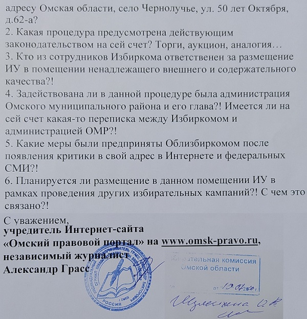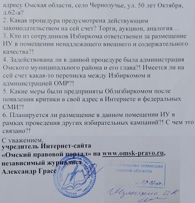 Для начала общие вопросы были направлены в адрес профильного ведомства – Избирательной комиссии Омской области. Для председателя Алексея Нестеренко они были сформулированы