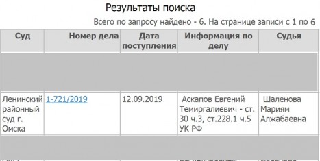 Первоначально Ленинский районный суд г.Омска осудил гражданина Аскапова за «покушение на сбыт в крупном размере», при этом оправдав его же в двух инкринимируемых ему эпизодах «за недоказанностью». Теперь его дело слушается повторно.