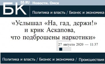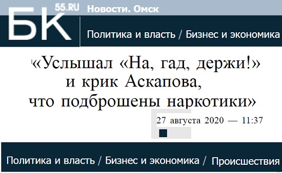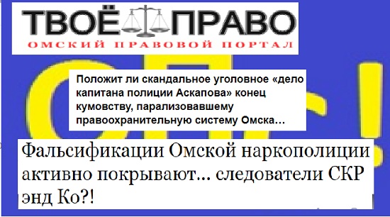 (см. Фальсификации Омской наркополиции покрывают… следователи СКР энд Ко?! https://rospres.site/forum/item/297163-falsifikatsii-omskoj-narkopolitsii-aktivno-pokryvayut-sledovateli-skr-end-ko, «Услышал «На, гад, держи!» и крик Аскапова, что подброшены наркотики» https://bk55.ru/news/article/172967/)