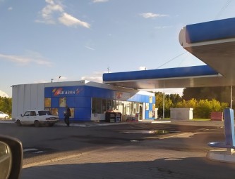- Когда мы выехали из Иртышского в Омск, на панеле приборов засветилась красная лампочка – топливо на нуле. По пути следования, с левой стороны, находится АЗС «Газпромнефть». Мы заехали, заправились, я купил сигарет и гамбургер, сосиску в тесте.