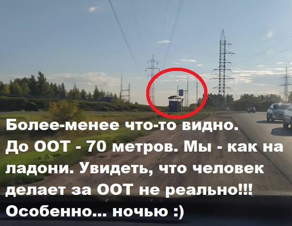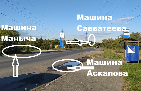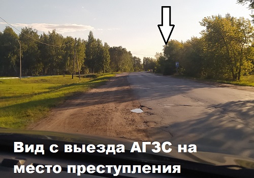 К тому же, дорога между точками «преступления» и «наблюдения» имеет явный изгиб, который не позволяет даже физически, будучи у АГЗС, увидеть… остановку общественного транспорта.
