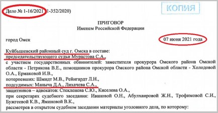 Судебное следствие в Куйбышевском районном суде г.Омска длилось около 10-ти месяцев (см. дело №1-16/2021).
