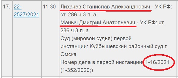 «Дело ОПГ 2.2.8» и «дело Марины Шмидт» по картотеке ГАС «Правосудие» и по линии Омского Правосудия проходят под… одной и той же нумерацией: