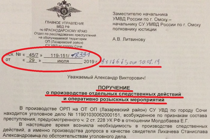 Скорее всего, нужно было его приспособить и задокументировать в тех же реестрах и журналах учета, что и «дело Молдобаева». Например, бросается в глаза, что «там и там» числится «подполковник С.А.Лихачев», место службы фигурантов – «омское УНК», инкриминируемое им преступление – «ст.286 УК РФ».
