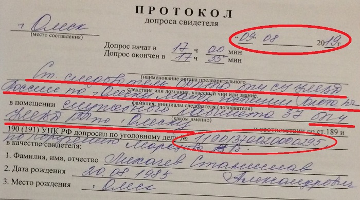 Но при этом «свидетель» четко помнил об этом своем «косяке» двухгодичной давности еще до того, как ему дали в суде… ознакомиться с оригиналом процессуального документа!