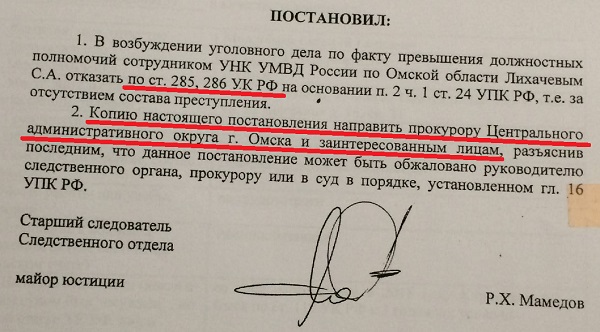 Что не удивительно, применительно к избирательному подходу омского Следкома, в целом, и применительно к возможностям-качествам личности сыщика Мамедова, в частности.