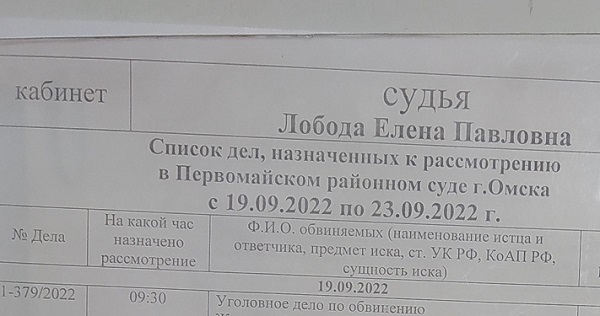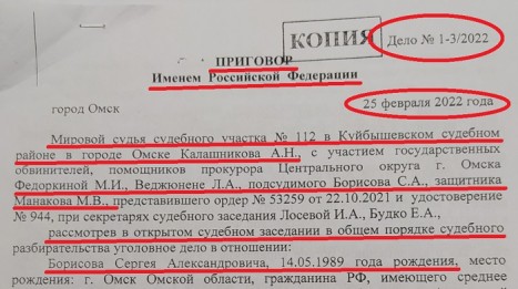 25.02.2022 года в отношении, по всей видимости, ничего не понимающего и не отдающего отчета своим действиям инвалида был провозглашен приговор «именем Российской Федерации» в исполнении мирового судьи с/у №112 в Куйбышевском судебном районе в городе Омске (дело №1-3/2022, судья Анна Калашникова).