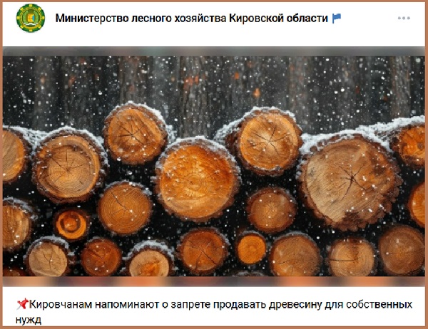 Призываем жителей Кировской области быть сознательными и не заниматься перепродажей древесины и справок».