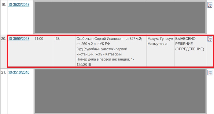 Вот, например, решение Челябинской апелляции по делу №10-3559/2018 от 27.07.2018г. в отношении гражданина Скобочкина С.И., обвиняемого, в том числе, по ч.2 ст.260 УК РФ, то есть, это приговор органа контролирующего и инспектирующего работу суда первой инстанции и его