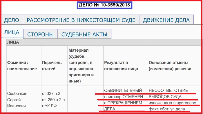 «Изучив материалы уголовного дела, обсудив доводы апелляционных жалоб, суд находит основания, указанные в п. п.1,2 ст.389.15 УПК РФ, ст.389.16 УПК РФ, ч.1 ст.389.17 УПК РФ для отмены обвинительного приговора с прекращением уголовного дела в отношении гражданина Скобочкина С.И. за отсутствием в деяниях состава преступления по следующим мотивам.